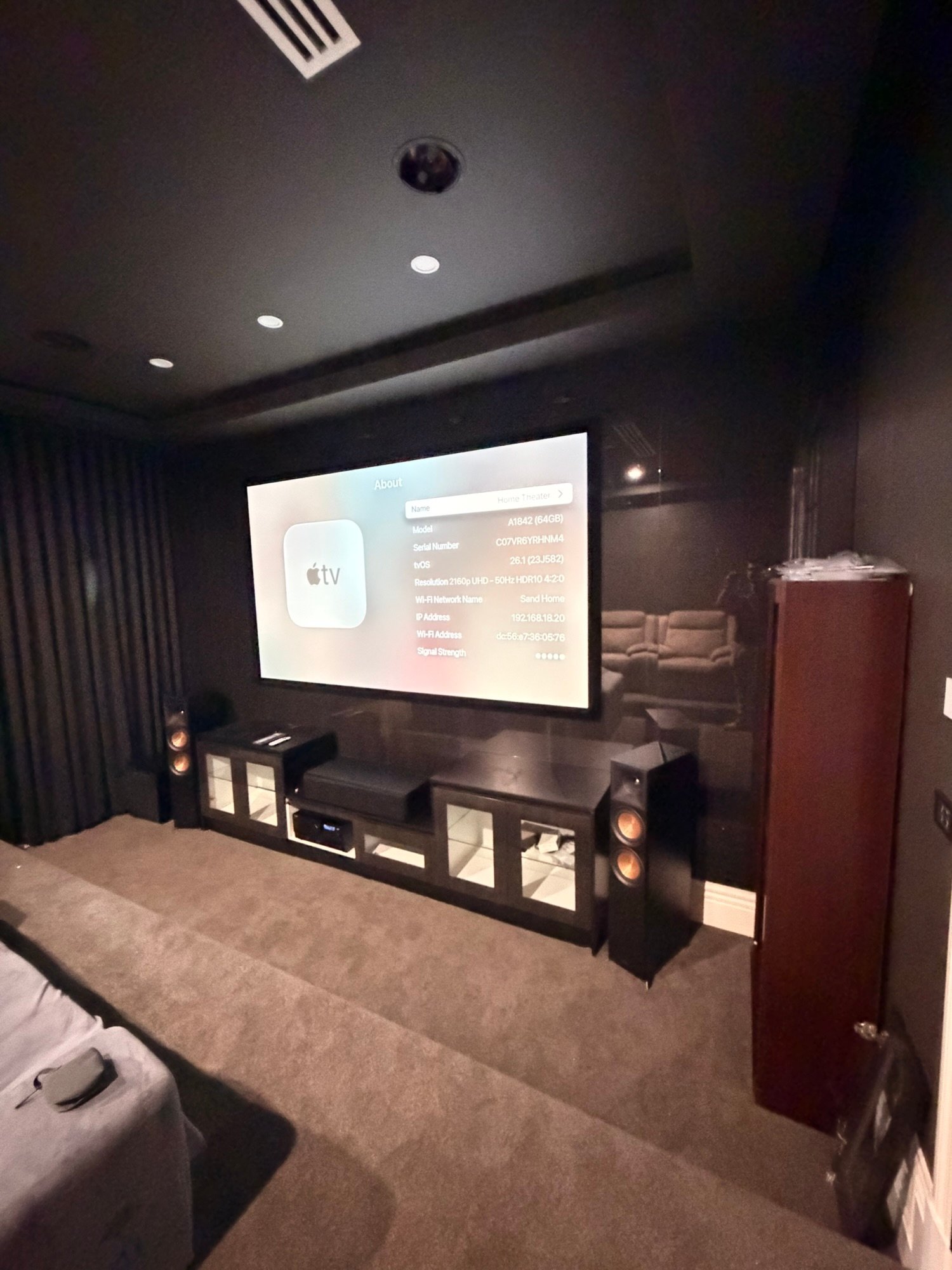 This project involved transforming a pre-wired cinema room into a high-end home theater experience. We installed Klipsch’s 5.1.1 Premium Series floor-standing speakers, complemented by two Dolby Atmos overhead speakers for immersive sound. The system is powered by a Yamaha AVR Advantage A4L, ensuring precise audio performance. A BenQ 4100 projector was added to deliver crisp, cinematic visuals. The result is a fully integrated home cinema that combines powerful audio, stunning visuals, and a true Dolby Atmos experience.